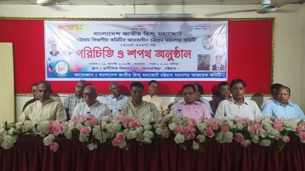 মিলন বৈদ্য শুভ, (চট্টগ্রাম):-বাংলাদেশ জাতীয় হিন্দু মহাজোট চট্টগ্রাম বিভাগীয় কমিটির আওতাধীন চট্টগ্রাম মহানগরের নবনির্বাচিত কমিটি ঘোষণা,পরিচিতি ও শপথ গ্রহণ অনুষ্ঠান বাংলাদেশ জাতীয় হিন্দু মহাজোট চট্টগ্রাম বিভাগীয় কমিটির সহ সাধারণ সম্পাদক