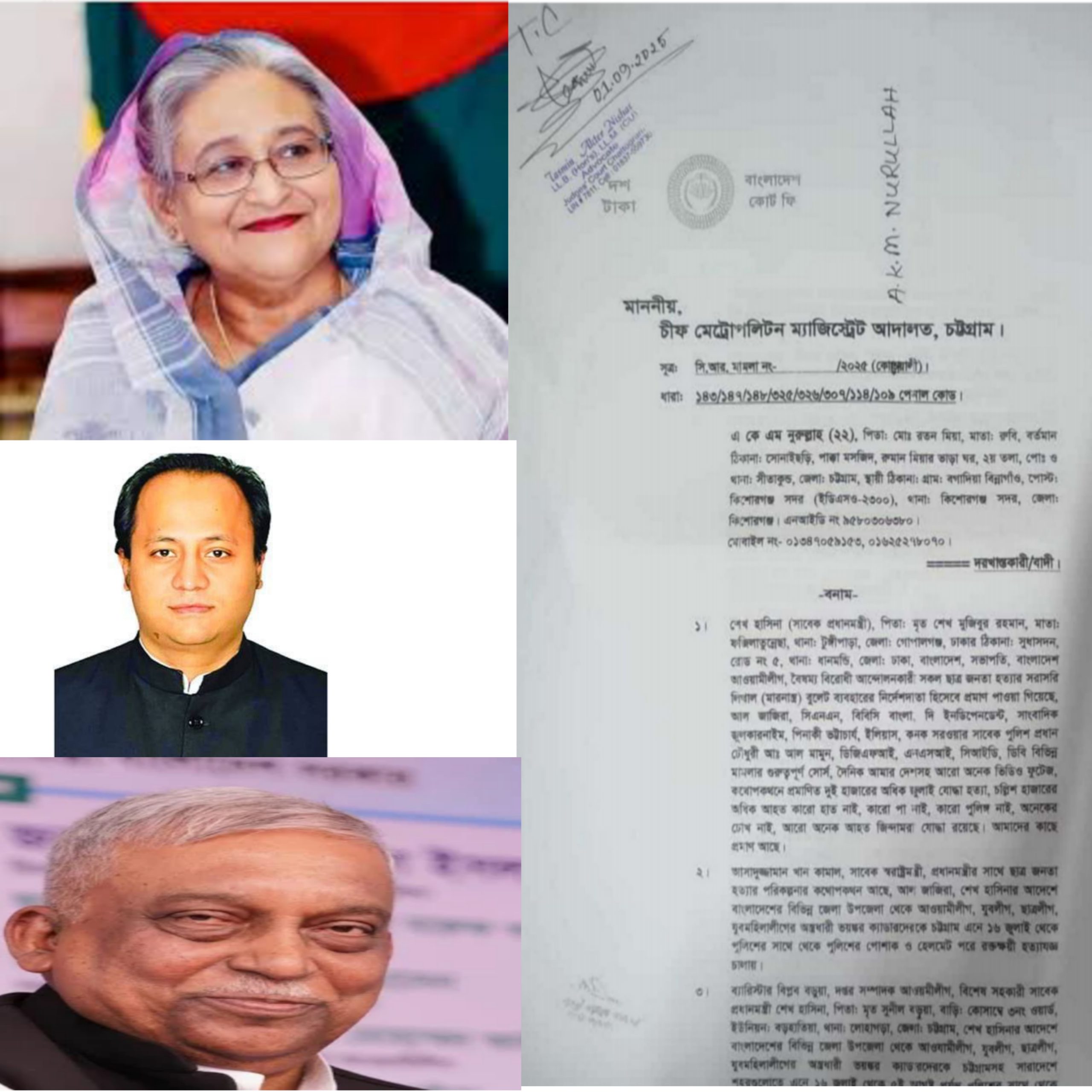 চট্টগ্রাম ব্যুরো-চট্টগ্রাম মেট্রোপলিটন মেজিস্ট্রেট আদালতে সাবেক প্রধানমন্ত্রী শেখ হাসিনাসহ ১৮২ জনের বিরুদ্ধে মামলা দায়ের হয়েছে। গত বছরের ৪ আগস্ট নগরীর নিউ মার্কেট এলাকায় আন্দোলনের সময় গুলিবিদ্ধ হওয়ার ঘটনায় আন্তর্জাতিক ইসলামী বিশ্ববিদ্যালয় চট্টগ্রামের শিক্ষার্থী একেএম নুরুল্লাহ এ মামলা করেন।সোমবার (১ সেপ্টেম্বর) চট্টগ্রাম মেট্রোপলিটন ম্যাজিস্ট্রেট আবু বকর সিদ্দিকের আদালতে মামলাটি দায়ের হলে আদালত অভিযোগ গ্রহণ করেন এবং তদন্ত করে প্রতিবেদন দাখিলের জন্য পুলিশ ব্যুরো অব ইনভেস্টিগেশনকে (পিবিআই) নির্দেশ দেন।