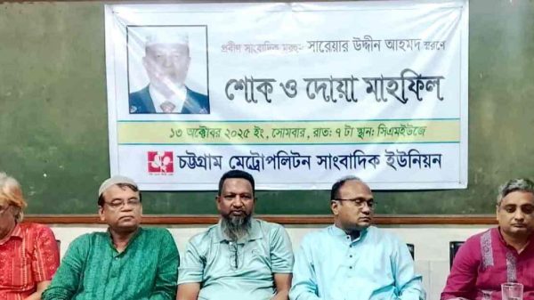 চট্টগ্রাম মেট্রোপলিটন সাংবাদিক ইউনিয়ন সিএমইউজে ও চট্টগ্রাম প্রেস ক্লাবের বয়োজ্যেষ্ঠ সদস্য মরহুম সাংবাদিক সরওয়ার উদ্দিন আহমেদর স্মরণে এক শোক ও দোয়া মাহফিল অনুষ্ঠিত হয়েছে। সোমবার সন্ধ্যা সাতটায় চট্টগ্রাম মেট্রোপলিটন সাংবাদিক ...বিস্তারিত পড়ুন