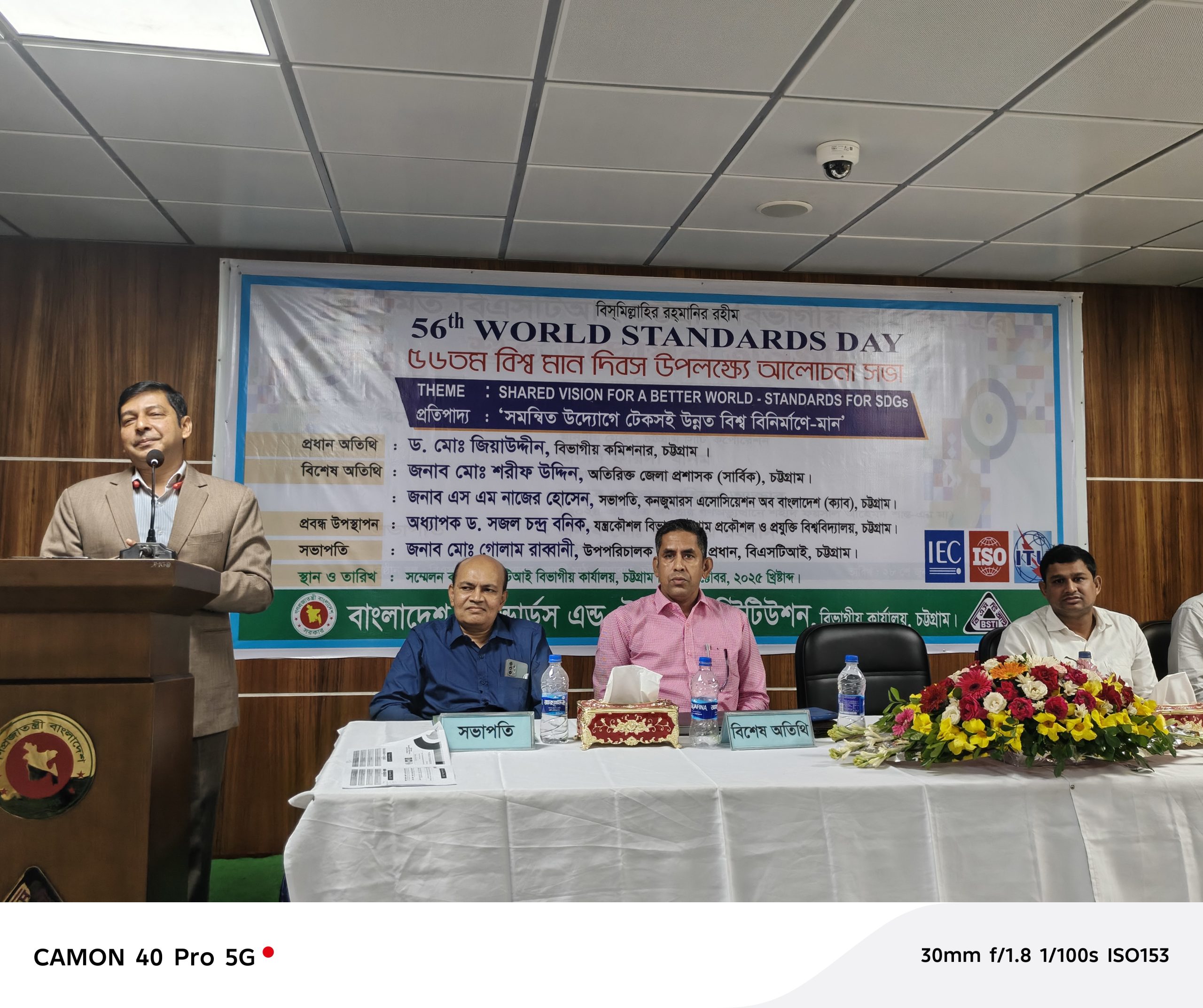 অদ্য ১৪ অক্টোবর ২০২৫ খ্রিঃ “বিশ্ব মান দিবস” উদযাপন উপলক্ষ্যে বাংলাদেশ স্ট্যান্ডার্ডস এন্ড টেস্টিং ইনস্টিটিউশন (বিএসটিআই), চট্টগ্রাম বিভাগীয় কার্যালয়ের সম্মেলনকক্ষে এক আলোচনা সভা অনুষ্ঠিত হয়। এবারের প্রতিপাদ্য বিষয় 'Shared vision for a better world-Standard for SDGS' অর্থাৎ 'সমন্বিত উদ্যোগে টেকসই উন্নত বিশ্ব বিনির্মাণে-মান'।